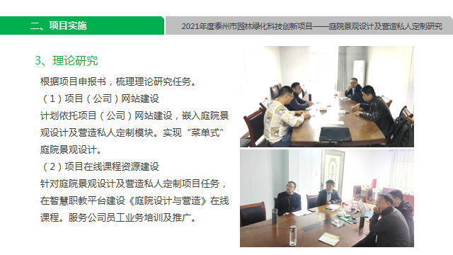 2021年11月24日,泰州市泰元園林建設(shè)有限公司設(shè)計(jì)總監(jiān)邵國(guó)榮、項(xiàng)目經(jīng)理虞九東。在泰州市住房和城鄉(xiāng)建設(shè)局參加泰州市園林綠化科研項(xiàng)目推進(jìn)會(huì)。